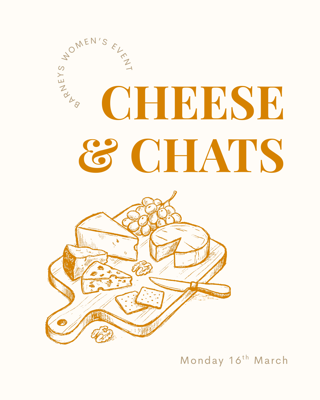 Cheese and chats is a monthly open invite for women at Barneys to connect with other women in a low key, welcoming way. Beginning in March, it’s a chance to gather somewhere cozy, eat some cheese, meet someone new and share life together. As a bonus, there will also be a chance to share your ideas for how to make women’s ministry great at Barneys! Come once, or as many times as you like. All women are welcome.